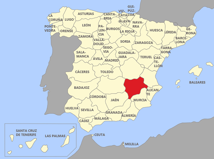 5) ¿Qué provincia española (en rojo en la imagen siguiente) limita al sur con las provincias de Murcia y Granada?